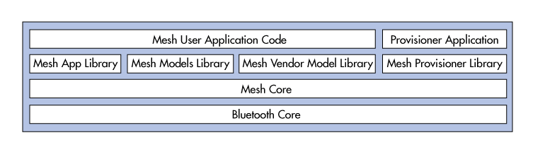 圖3描繪了BLE Mesh節(jié)點(diǎn)中的軟件層。請(qǐng)注意,Mesh用戶和Provisioner應(yīng)用程序如何位于體系結(jié)構(gòu)的頂部,庫和核心功能的上方,以使它們獨(dú)立于底層BLE Mesh網(wǎng)絡(luò)。還請(qǐng)注意,網(wǎng)格供應(yīng)商模型庫如何使添加專有功能,同時(shí)保持與藍(lán)牙標(biāo)準(zhǔn)的兼容性成為可能。