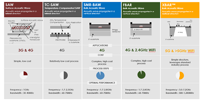 隨著聲波諧振器的發(fā)展,現(xiàn)代手機RF架構(gòu)以及智能手機的使用激增。這些設(shè)備結(jié)合了低成本,小巧的尺寸和性能特點,適合當前高達4G的智能手機的頻率范圍和信號功率范圍。