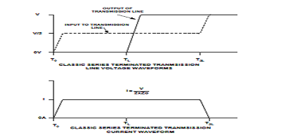 圖2.串聯(lián)終端傳輸線的電壓和電流波形